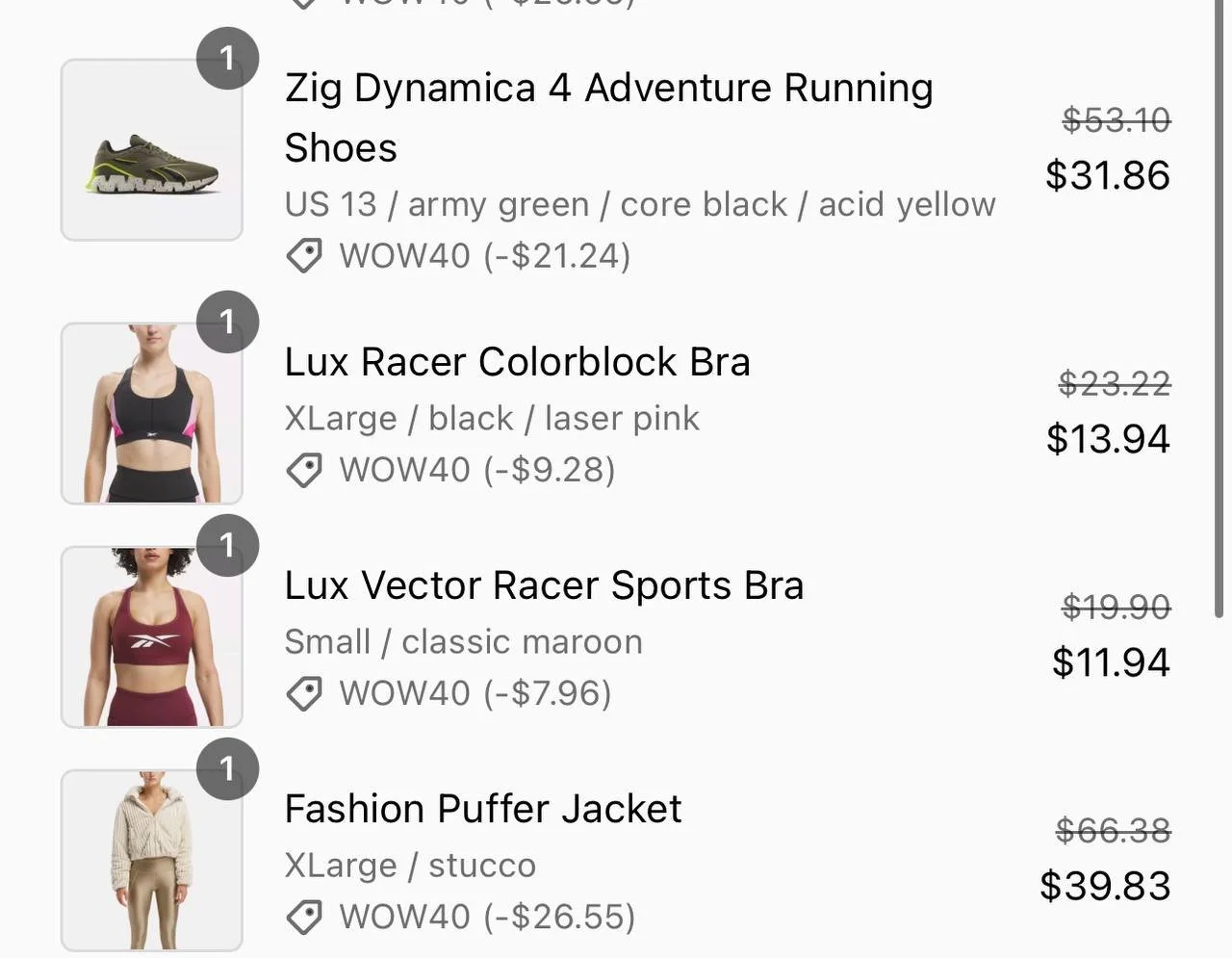 Reebok Favorites Extra 40% off Code: WOW40