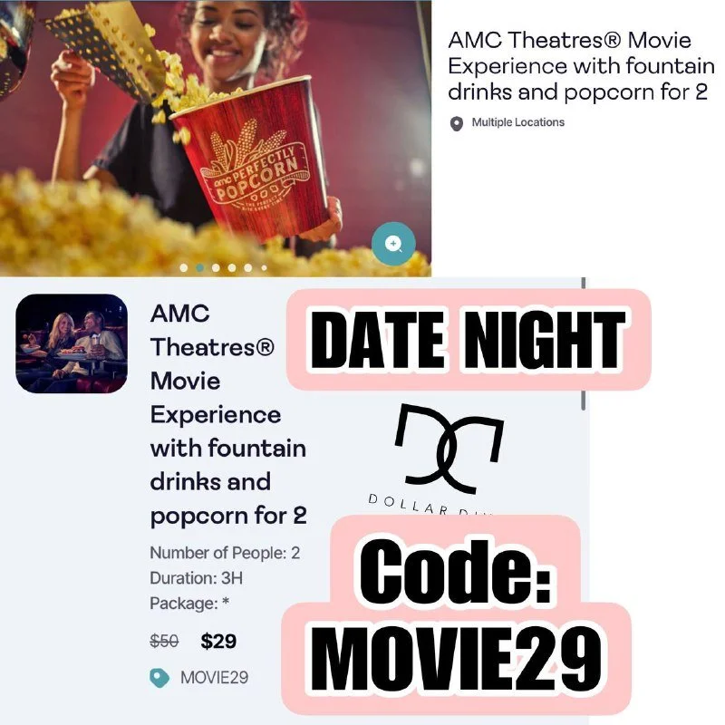 AMC DATE NIGHT Get 2 movie tickets 2 drinks and popcorn for 2 with this offer