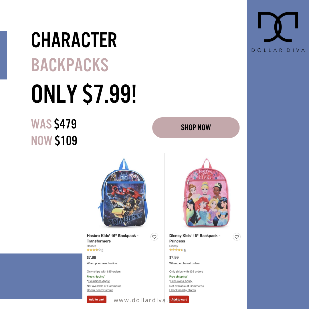 Character Backpacks As low as $7.99