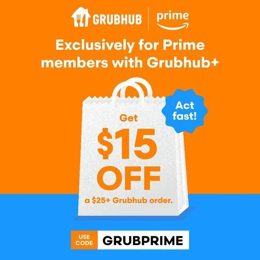 Prime Members Grubhub $15 off