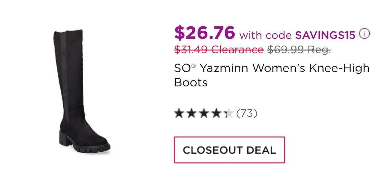 SO Yazminn Knee High Boots Code: SAVINGS15
